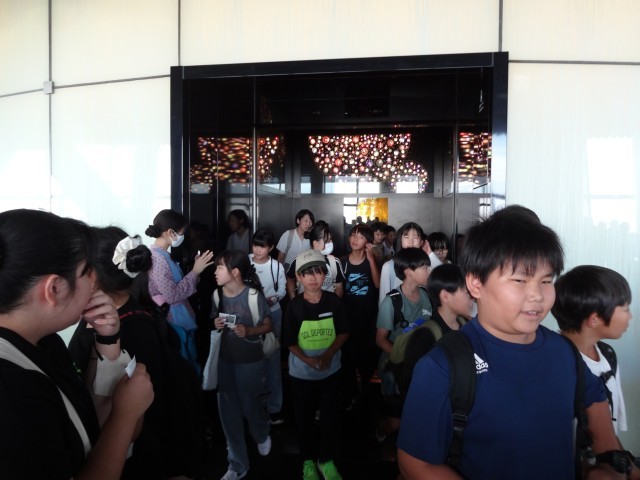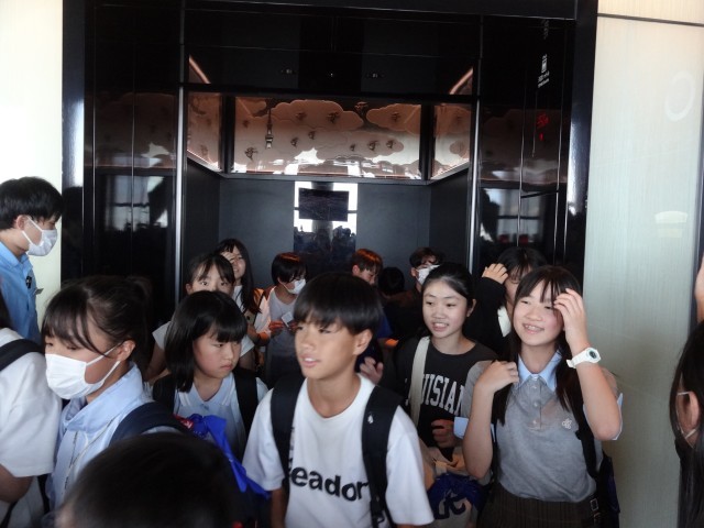 東京スカイツリーでは、高速エレベーターの速さに驚き、春夏秋冬を表現したエレベーター内の装飾を眺める姿が見られました。