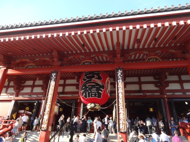 おみくじに挑戦する子、ぬいぐるみくじで当てた大きなぬいぐるみを抱えてくる子、雷門の下の彫刻の精巧さに驚く子。
