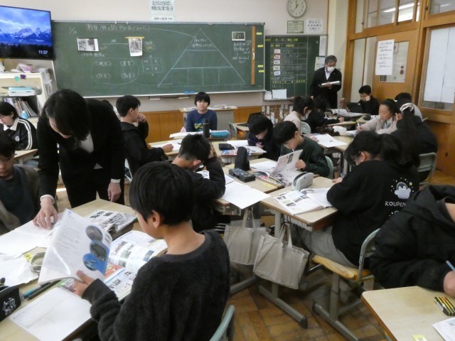 終戦を迎えたころの学習をしています。日本がどれほど追い詰められていたのか、どのように戦争を終わらせたのか、資料から調べました。