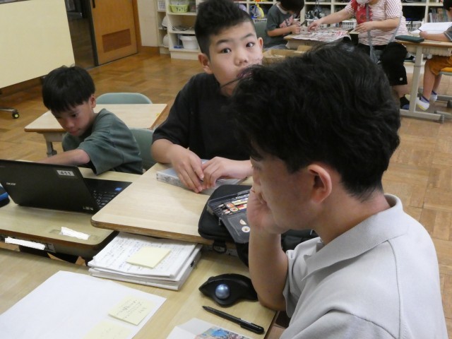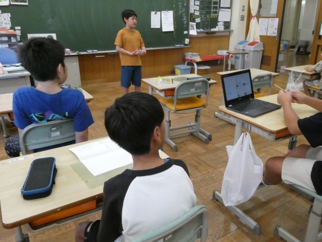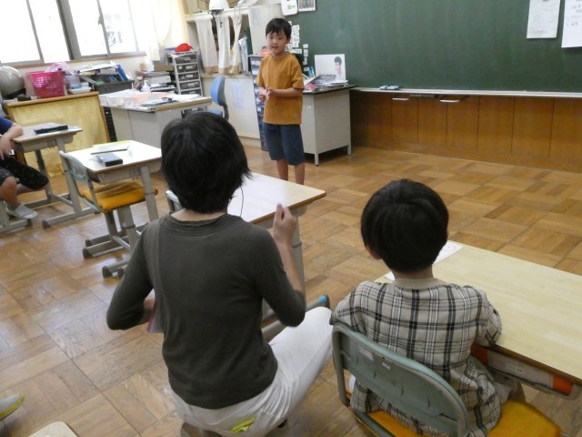 夏休みの思い出を発表しました。聴いている子供たちも真剣に聴いて、質問をしたり感想を伝えたりしていました。