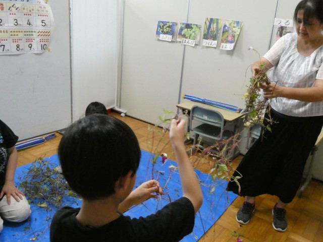 67組の図工では、講師の先生をお招きして、竹筒を利用したぶんぶんごま作りに挑戦しました。