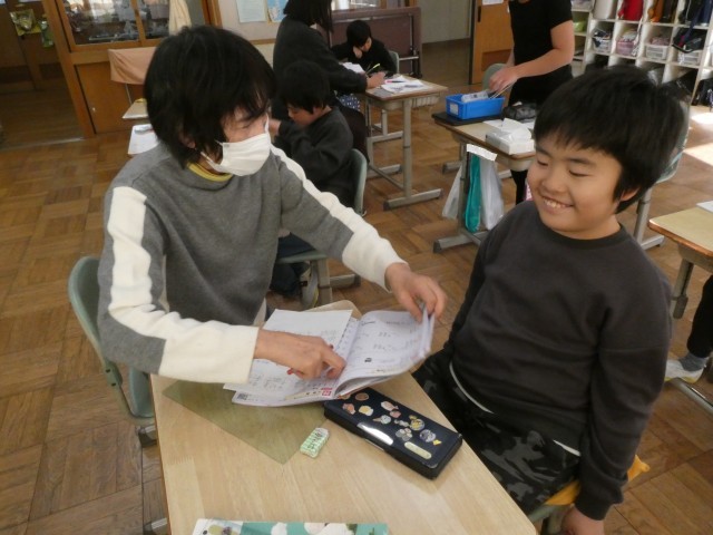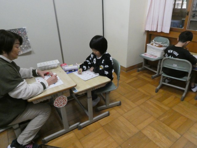 どちらのクラスも自分の課題に向かってがんばっていました。「最近、算数が得意になってきたね!」ほめられてにっこり。