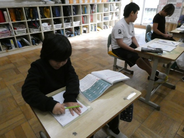 3・4年生は、ソーラン節の練習へ。他の学年は、それぞれの課題に向かっています。