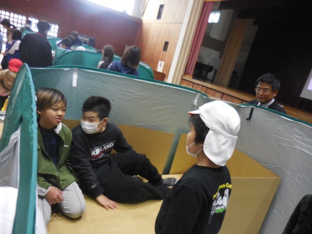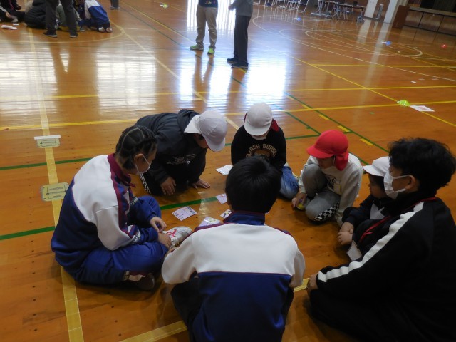 大岡三校の仲間たちと防災に関するゲームなどをして楽しく交流しました。