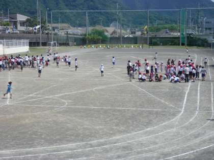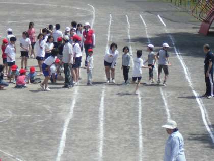 6年生の発案で、ロング昼休みに「たてわりリレー」の自主練習を行いました。
