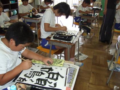「白鳥」と書きました。中心線を意識しながら、点画の配置に気を配って書きました。