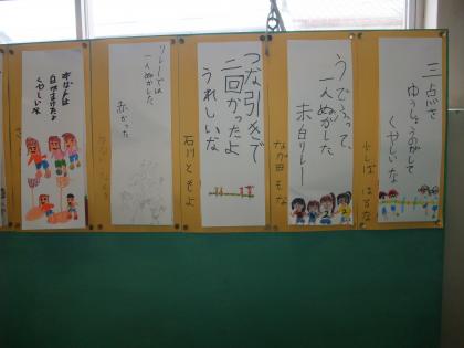 俳句掲示コーナーには、運動会での頑張りを語る2年生の作品が早速展示されています。