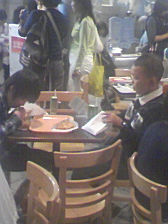 もうすぐ午後1時。お腹がすいてきました。ピザ、ハンバーガー…です。