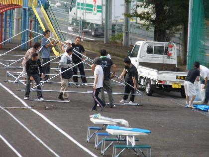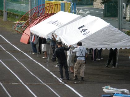 運動場にテント張り