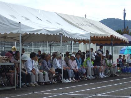 本日は、老人会の皆様がたくさん応援に駆けつけてくれました。いつも児童の安全を見守っていただきありがとうございます。おかげさまで立派な演技ができました。