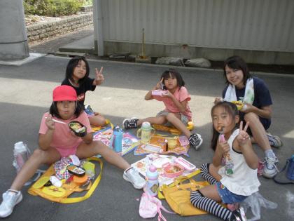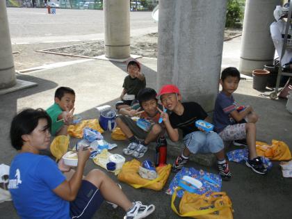 今日はお弁当の日でした。お家の人が作ったお弁当をおいしくいただきました。友達と一緒に青空のもとで会話しながら、お弁当を食べました。