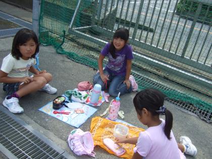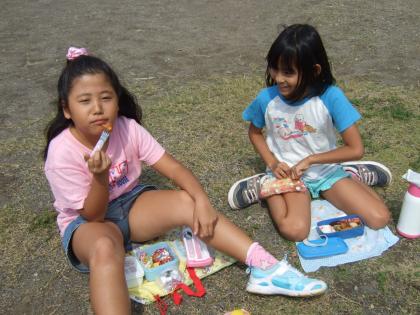 今日はお弁当の日でした。お家の人が作ったお弁当をおいしくいただきました。友達と一緒に青空のもとで会話しながら、お弁当を食べました。