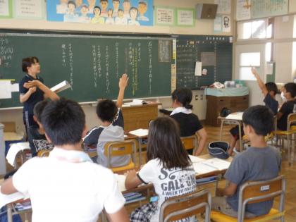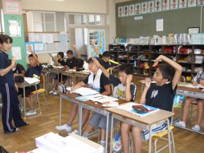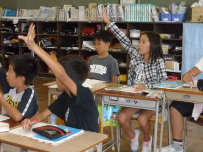 5年生は、国語で「方言を調べて報告しよう」の授業を行っていました。手をあげて発表する児童の姿が目につきます。