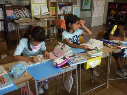 朝の読書タイムでは、自分で選んだ本を読んでいました。読んだ本の感想を「すいせん図書カード」に記入する子どももいました。