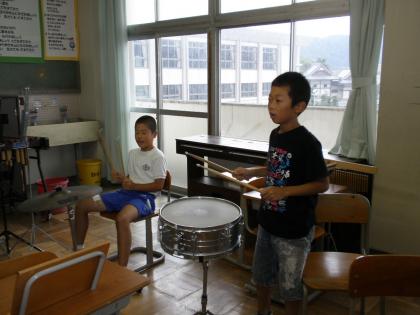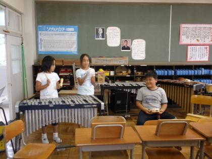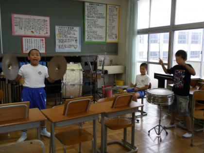 音楽の授業風景です。「音のカーニバル」の曲に合わせてみんなで合奏しました。それぞれが楽器を選び、楽しく合奏しました。