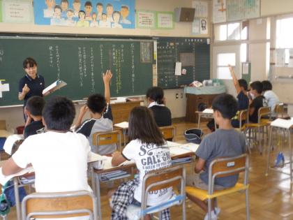 5年生は、国語「方言を調べて報告しよう」の学習を行っていました。一人一人が調べたことを友達に分かるように説明していました。