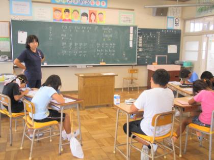 4年生は国語「ローマ字」の学習をしていました。自分の名前をローマ字で書くことができました。友達同士で見合っていました。