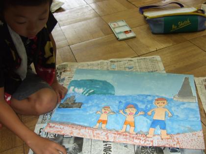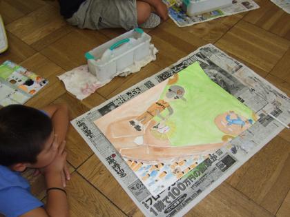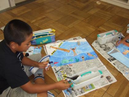 4年生は図工で絵画に挑戦していました。細かいところまで丁寧に描いていました。