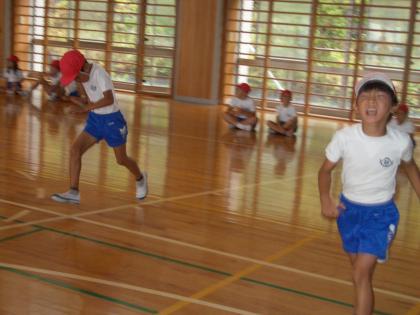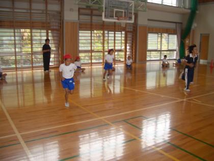 1〜3年生は、体育の時間に新体力テストを行っています。今日は、20mシャトルランを行いました。20m間を何回往復できたかを計測します。