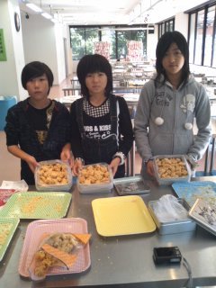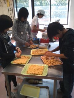 6年生の3人は雷おこし体験に挑戦しました。手際よくとても上手にできて満足顔です!