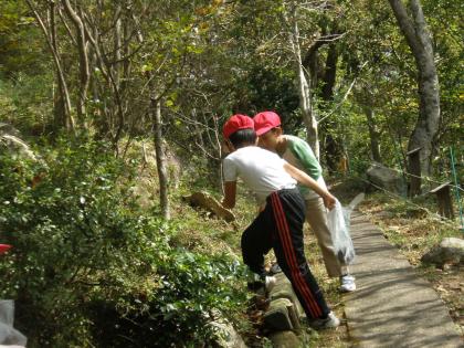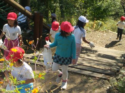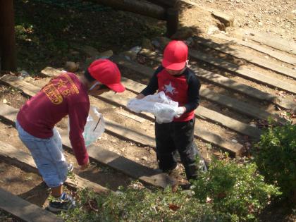 どんぐりやくりの実がたくさん落ちていて、みんな一生懸命拾いました。たくさんの秋を見つけることができました。