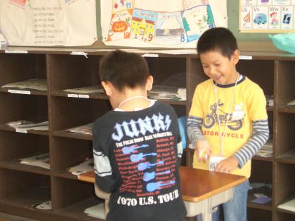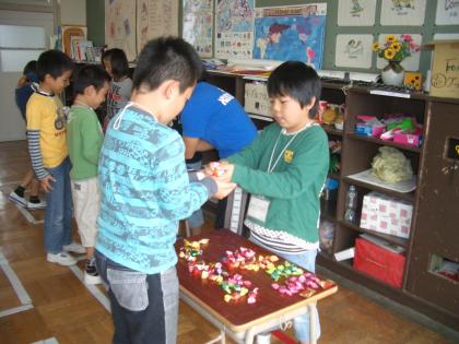 おやつの名前を習っています。おやつの名前をはやく言ったり、買い物遊びをしたりして楽しみました。