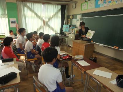 5年生は、「鬼の助」「オオカミグーのはずかしいひみつ」でした。本好きの子どもたちは、真剣な表情で聞いています。