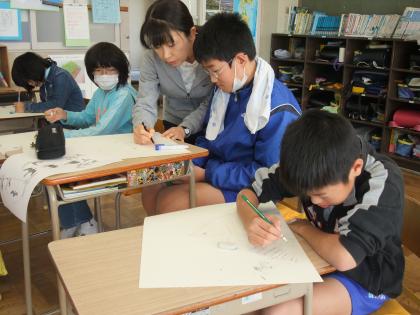 5年生は、図工で鳥の絵を描いていました。