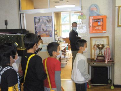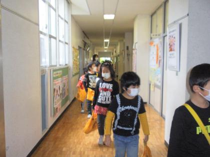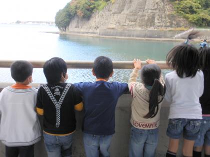 東小へ着いて、「おはようございます。よろしくお願いします。」と元気よくあいさつする子どもたち。何度か交流で東小へ行っている1年生とは違って、2年生はあちこちきょろきょろ。「学校のすぐそばに海がある。」とベランダから眺めていました。