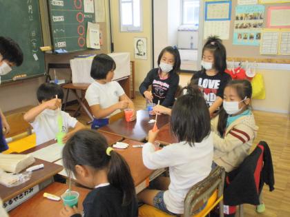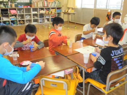 スライム作りや射的、お化け屋敷と東小の1・2年生の考えた楽しいお店を一緒に楽しむことができました。