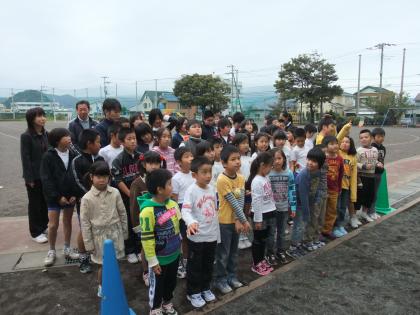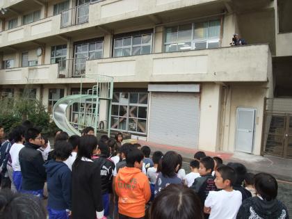 今日は、25分間休み時間に航空写真の撮影がありました。空を旋回する飛行機に向かって、みんなで手を振りました。