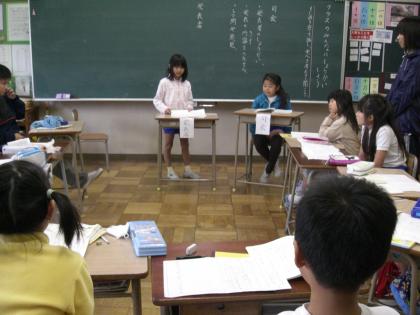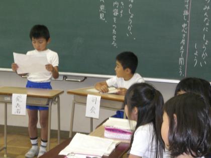 3年生は、国語「クラスのみんなにしょうかいしよう」の学習で、自分が調べてきた友だちに紹介したいことを発表しました。司会、発表者、聞き手に分かれて発表会を行いました。