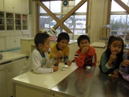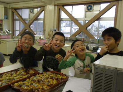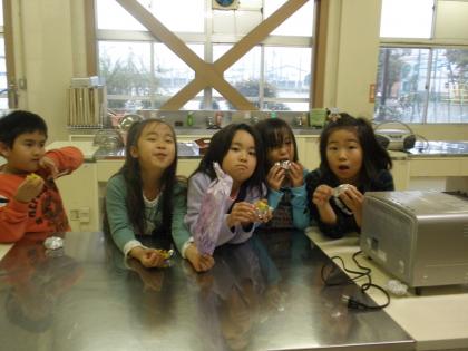 出来上がったスイートポテトをみんなで食べました。他の学年の人たちにも食べてもらえるようにお届けしました。「おいしかったよ。」の言葉にみんなにっこり。