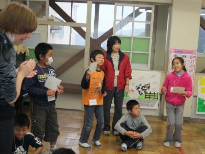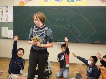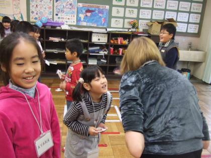 3・4年生の英語では、「When is your birthday?(誕生日はいつですか。)」という言語材料を使用して、友だちやALTと英会話を楽しみました。