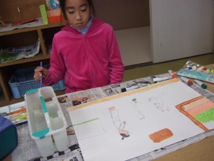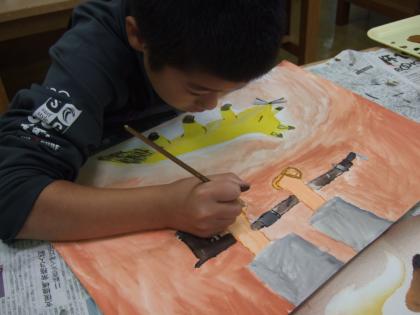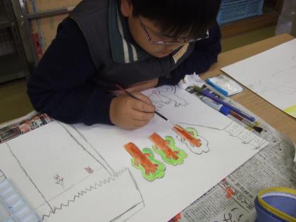 4年生は、図工でお話の絵を描いていました。みんな真剣に集中して取り組んでいました。