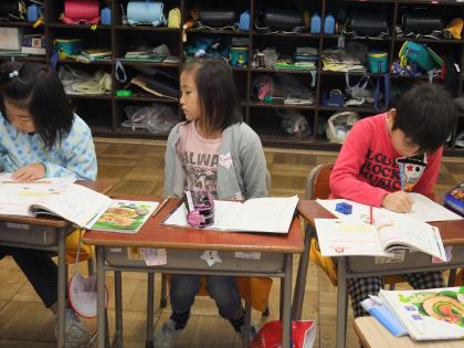 2年生は算数の学習を行っていました。みんな課題に向かい、意欲的に学習を進めていました。