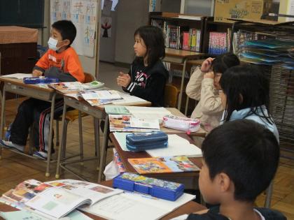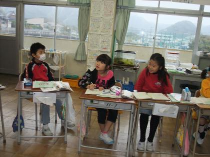3年生は社会科で「スーパーマーケットにお客さんが来るひみつを考えよう」という課題で、自分が社会科見学などで調べたことを発表していました。