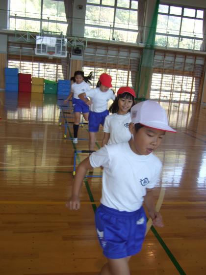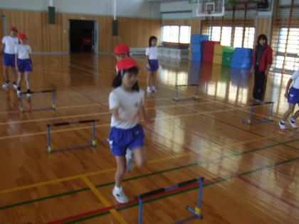 3・4年生は体育で「ハードル走」を行いました。自分で跳び方を工夫しながら活動していました。
