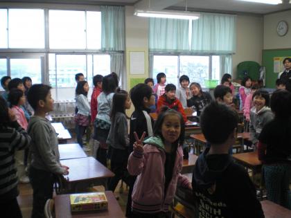 3年1組朝の会で愛唱歌「ビリーブ」を元気に歌っていました。