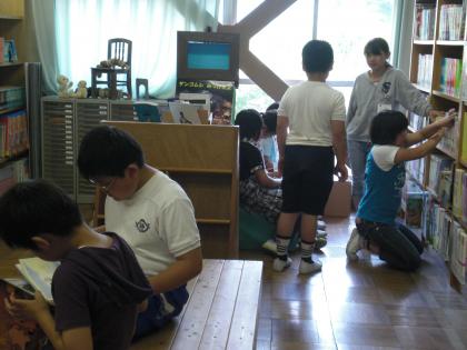 たくさんの児童が、図書館に来て読書を楽しんでいます。