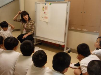 もうすぐプール開きです。健康で清潔な体でプールに入れるよう、お話を聞いていました。