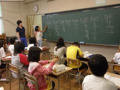 4年生は、算数の少人数学習中でした。わり算の筆算を黒板に書き、一人一人計算方法を説明していました。まとめの段階なので、これまで学習した方法がいかされているか、互いに確認し合っていました。