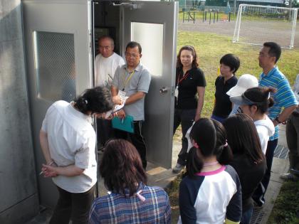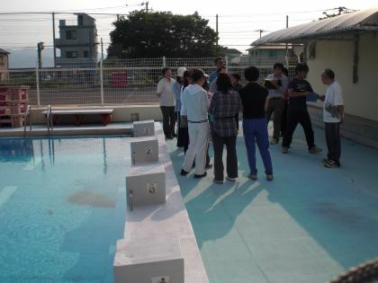 いよいよプールシーズン到来です。機械操作説明を芳賀先生にしていただきました。