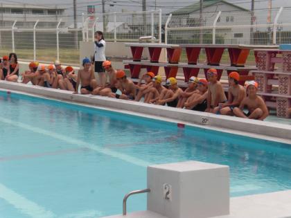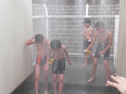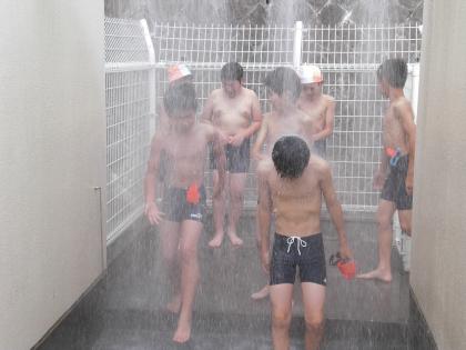 15日(火)第5時に6年生がプール開きを行いました。まずは、シャワーです。