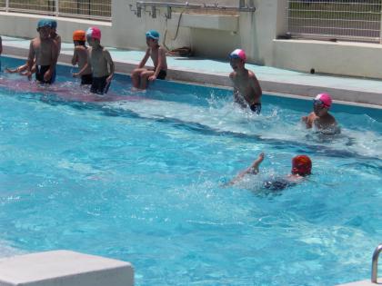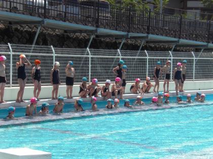 本日のプール状態は、気温31度・水温24度です。3年生は気持ちよさそうです。