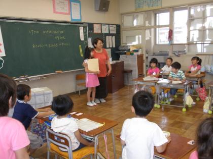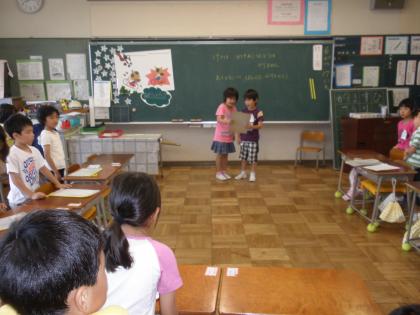 1年生は、司会も健康観察も保健調べも、もう上手にできるようになりました。歌声も元気いっぱいで、梅雨の晴れ間の青空のようにさわやかです。