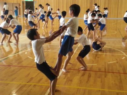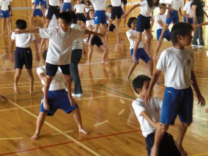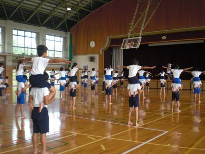 体育館にて5,6年生が、2学期の運動会に向けて練習しています。