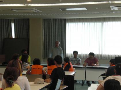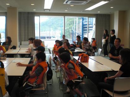 親子で集まり、総勢45名です。体験乗船について説明を聞いています。