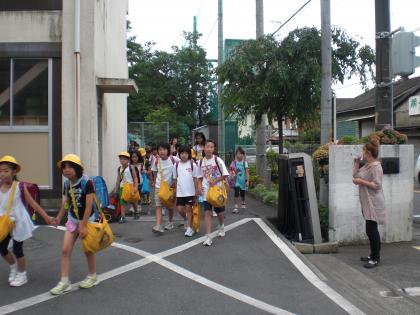 地区センターで降車し、みんなで仲良く元気に登校です。
