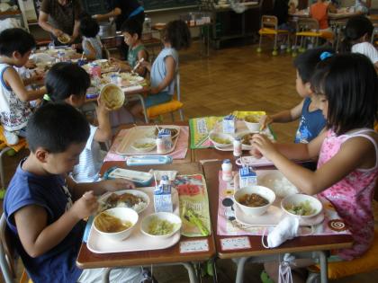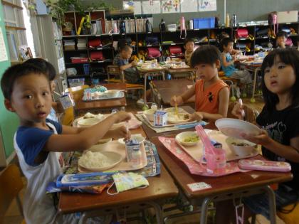 学校給食初体験の1年生も、もうすっかり慣れました。